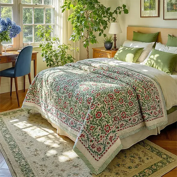 Experience the beauty of hand block printing with our collection of naturally made textiles. From plush quilts to stylish bedspreads and bed sheets, each item is meticulously crafted for comfort and elegance. Embrace sustainable luxury with The Jaipur Wala.