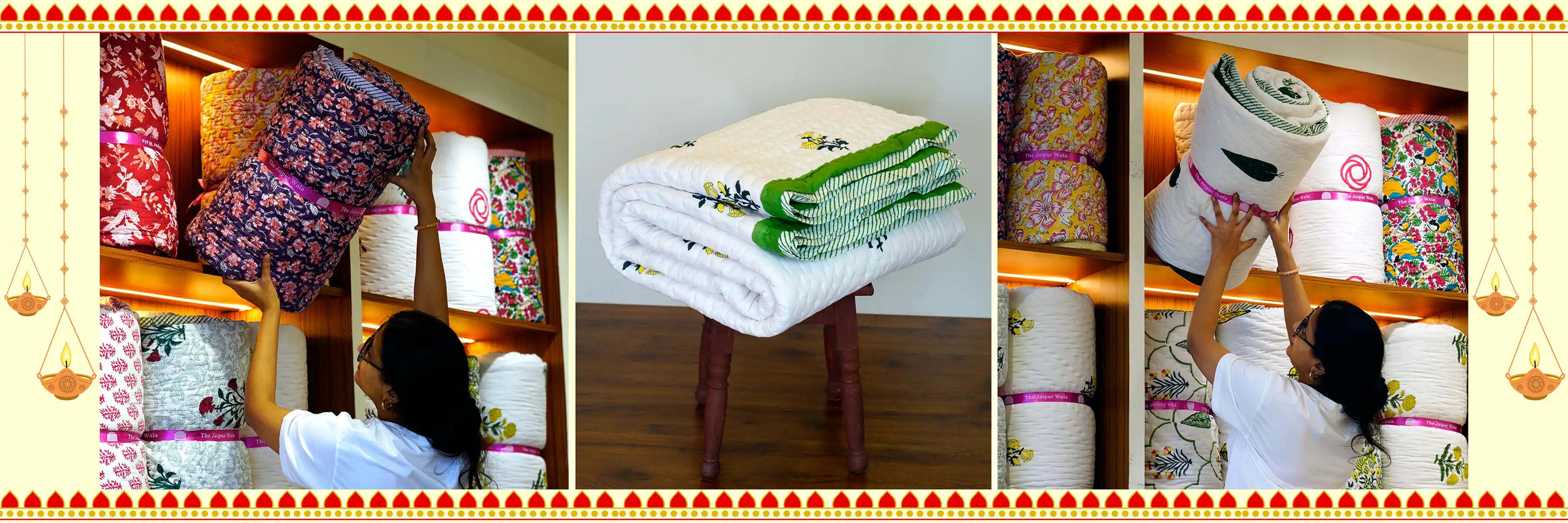 Discover the essence of Jaipur's heritage in our meticulously crafted bedding. Using organic materials and traditional techniques, we create exquisite pieces that provide unparalleled comfort. With a commitment to sustainability and fair trade, we empower artisans and create a positive impact. Transform your bedroom into a haven of elegance with "The Jaipur Wala" and experience the joy of luxurious sleep.