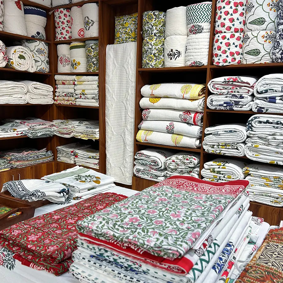 Experience the beauty of hand block printing with our collection of naturally made textiles. From plush quilts to stylish bedspreads and bed sheets, each item is meticulously crafted for comfort and elegance. Embrace sustainable luxury with The Jaipur Wala.